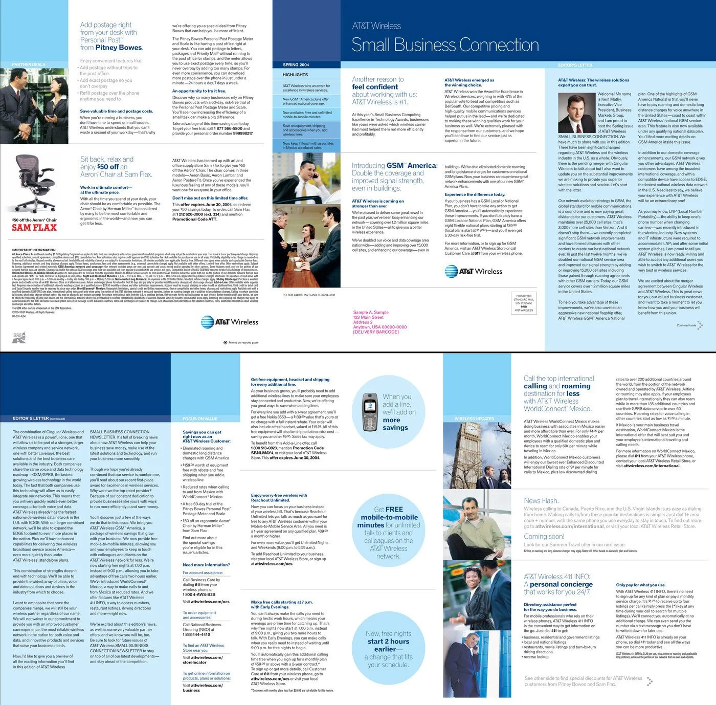 This quarterly single-fold newsletter, sent to AT&T Wireless small business customers, kept readers abreast of all the latest ways AT&T could help them improve productivity and save money in bite-sized articles.